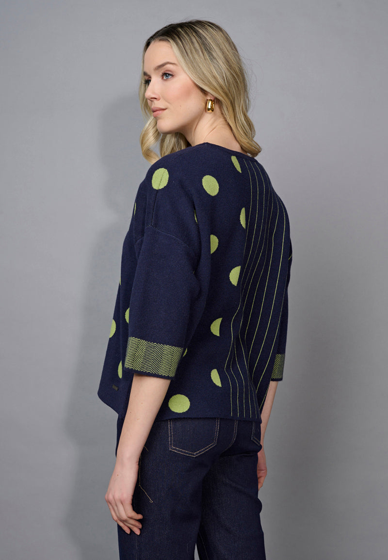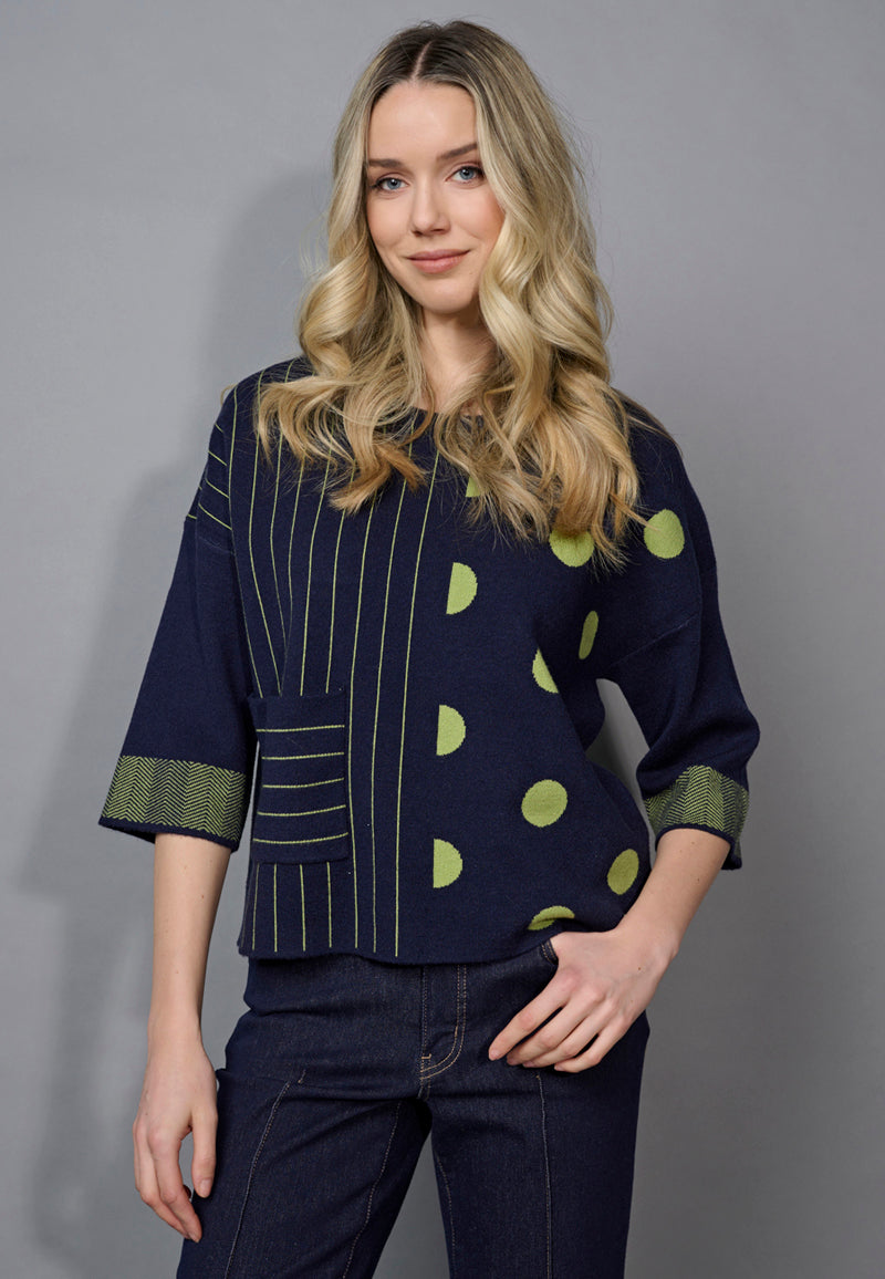 Features of the 3/4 Sleeves Striped Polka-Dot Top: