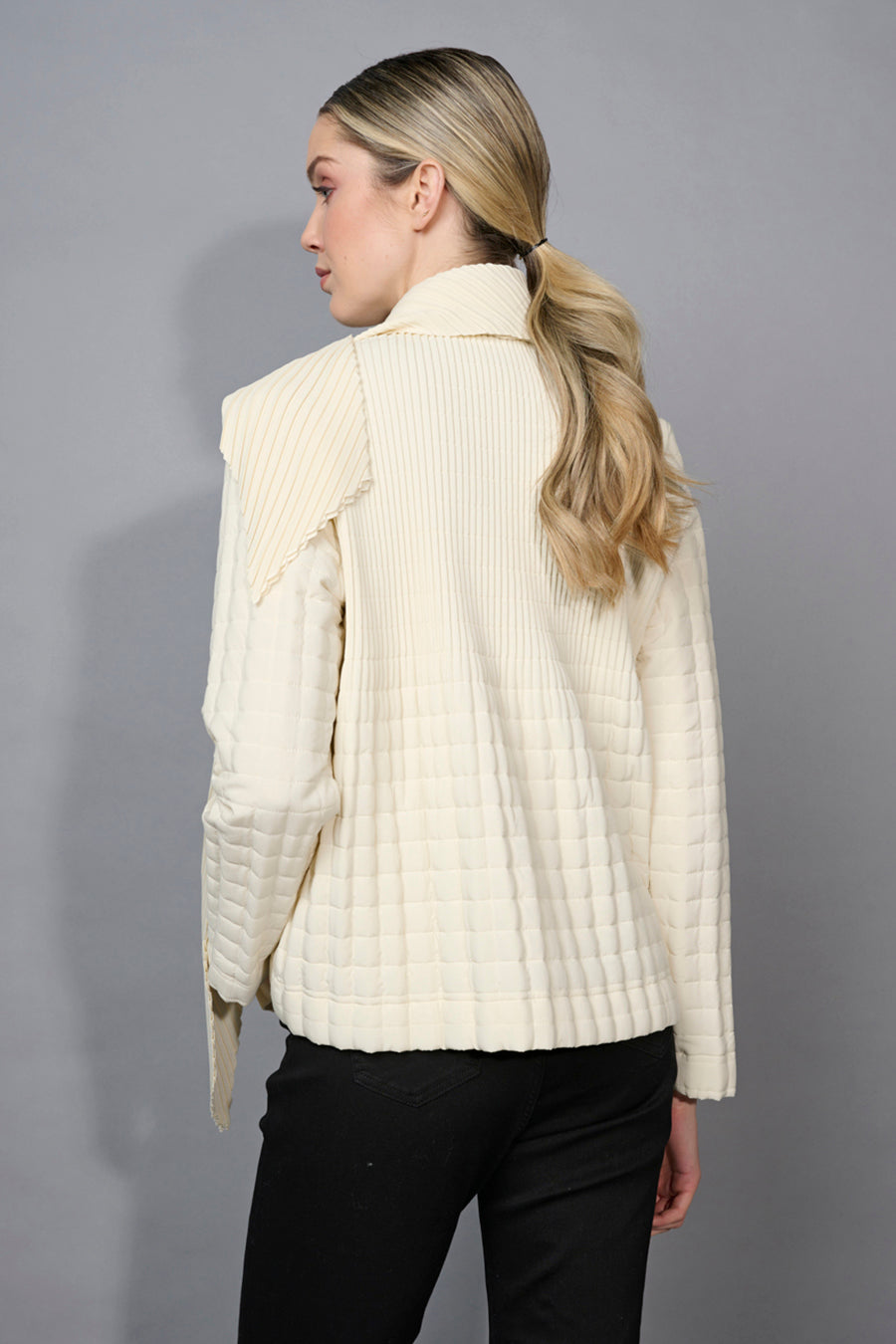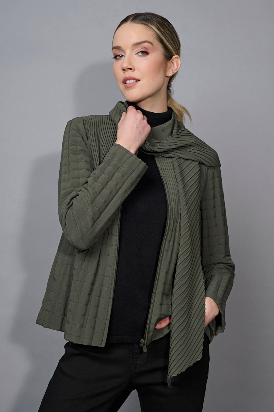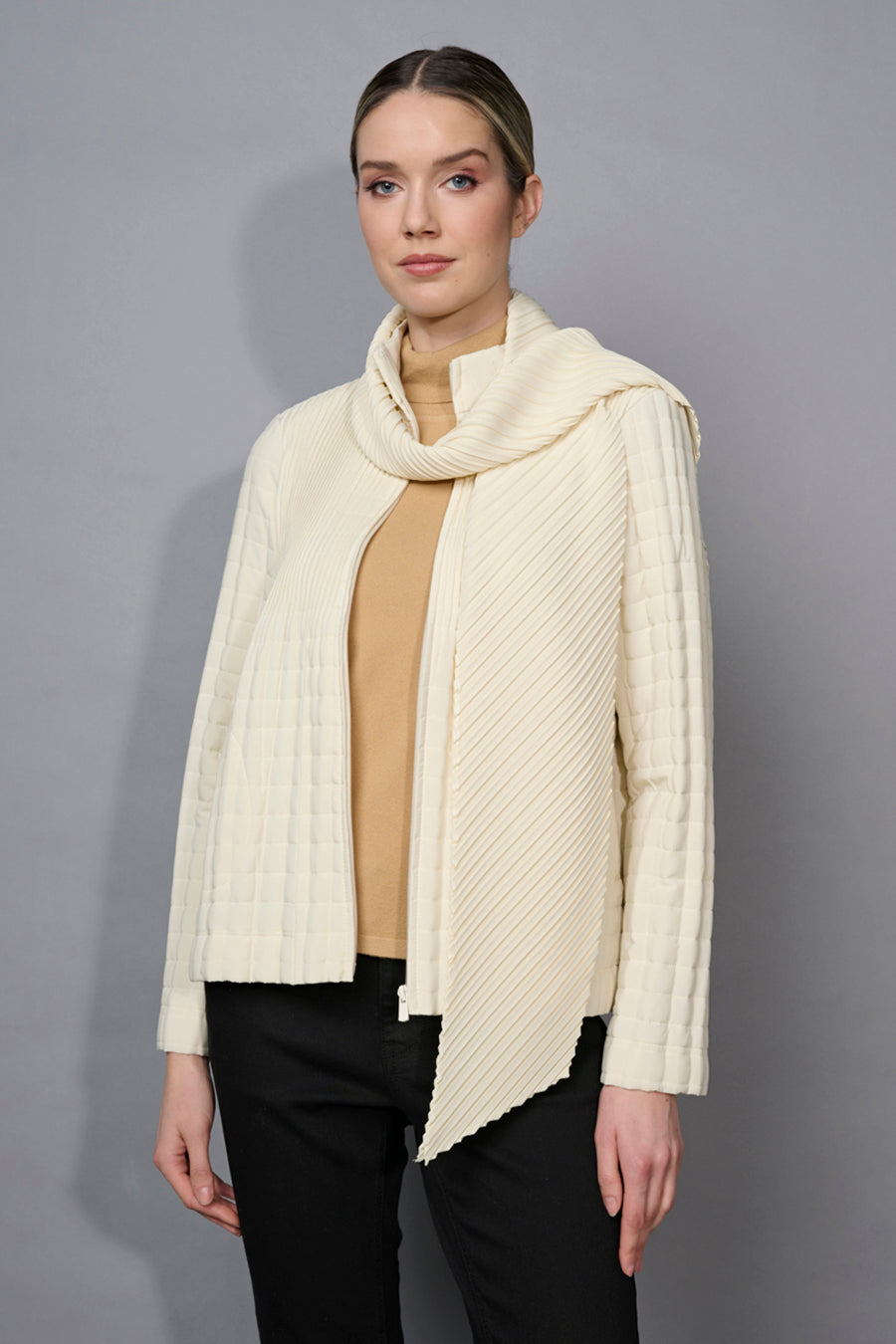 Part outerwear, part styling piece, the Pleated Jacket With A Scarf offers subtle movement through fine pleats and a coordinating scarf attachment. Designed to make a statement with minimal effort and ideal for transitional weather and dressed-up layering.