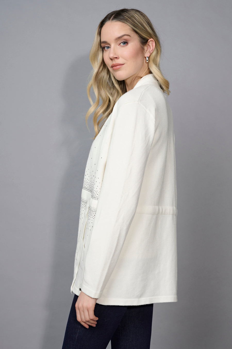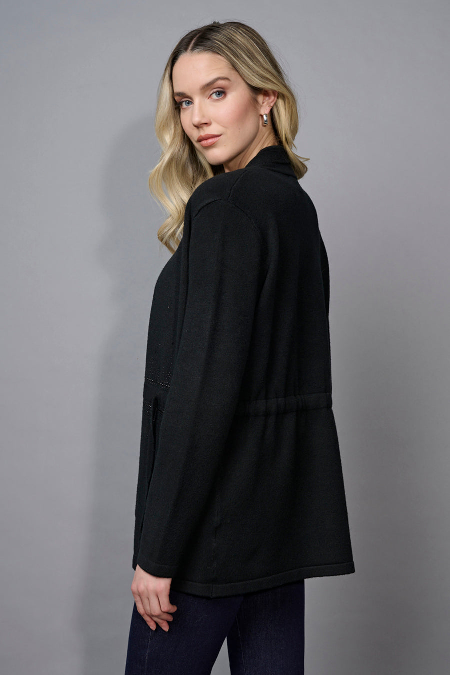 Elevate your casual outerwear with the Rhinestone Drawstring Waist Jacket. Subtle sparkle lines the front for just the right amount of dazzle, while the drawstring waist ensures a flattering shape. Lightweight and easy to style, it transitions beautifully from day to evening.