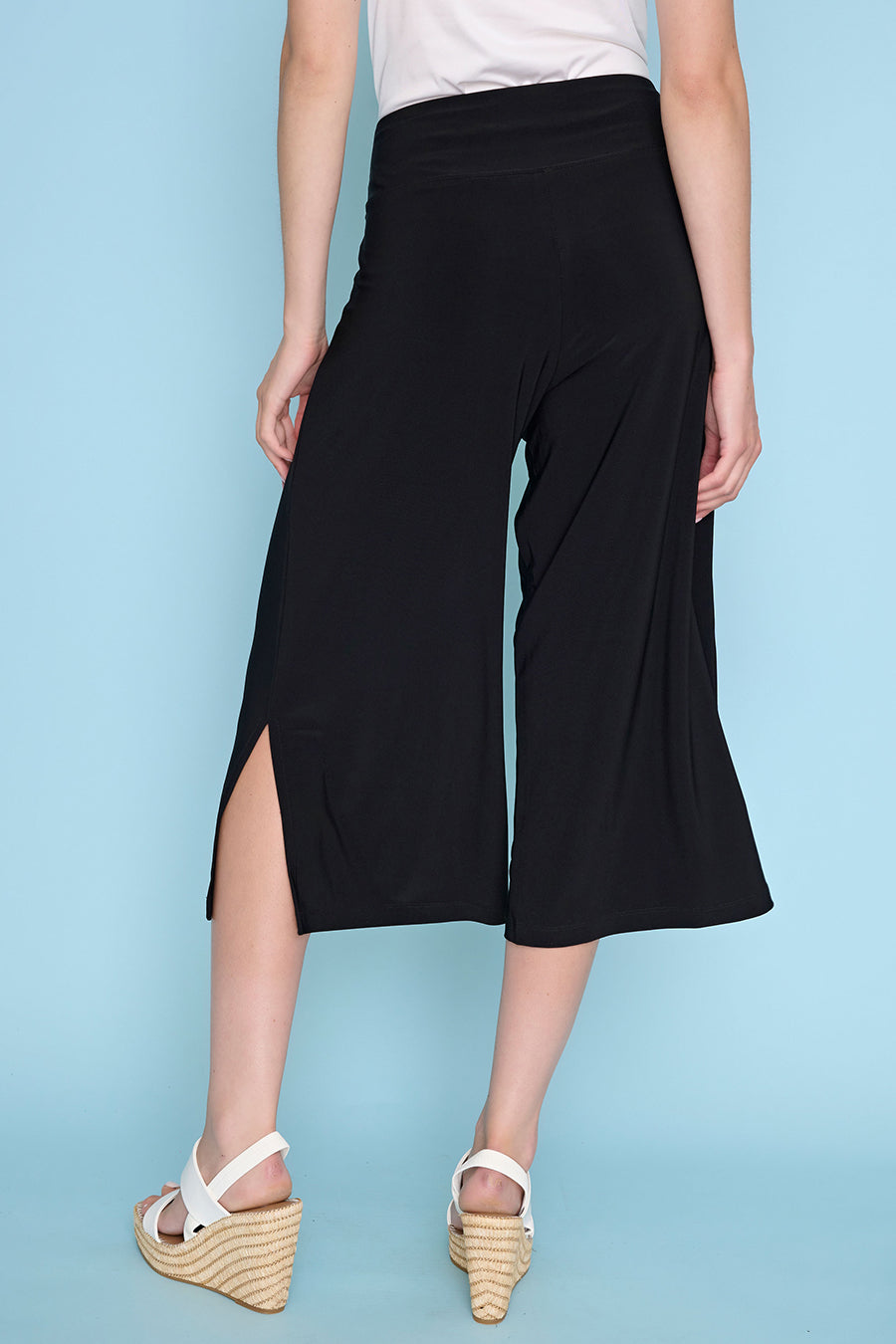 Wide-Leg Side-Slit Capri Pants