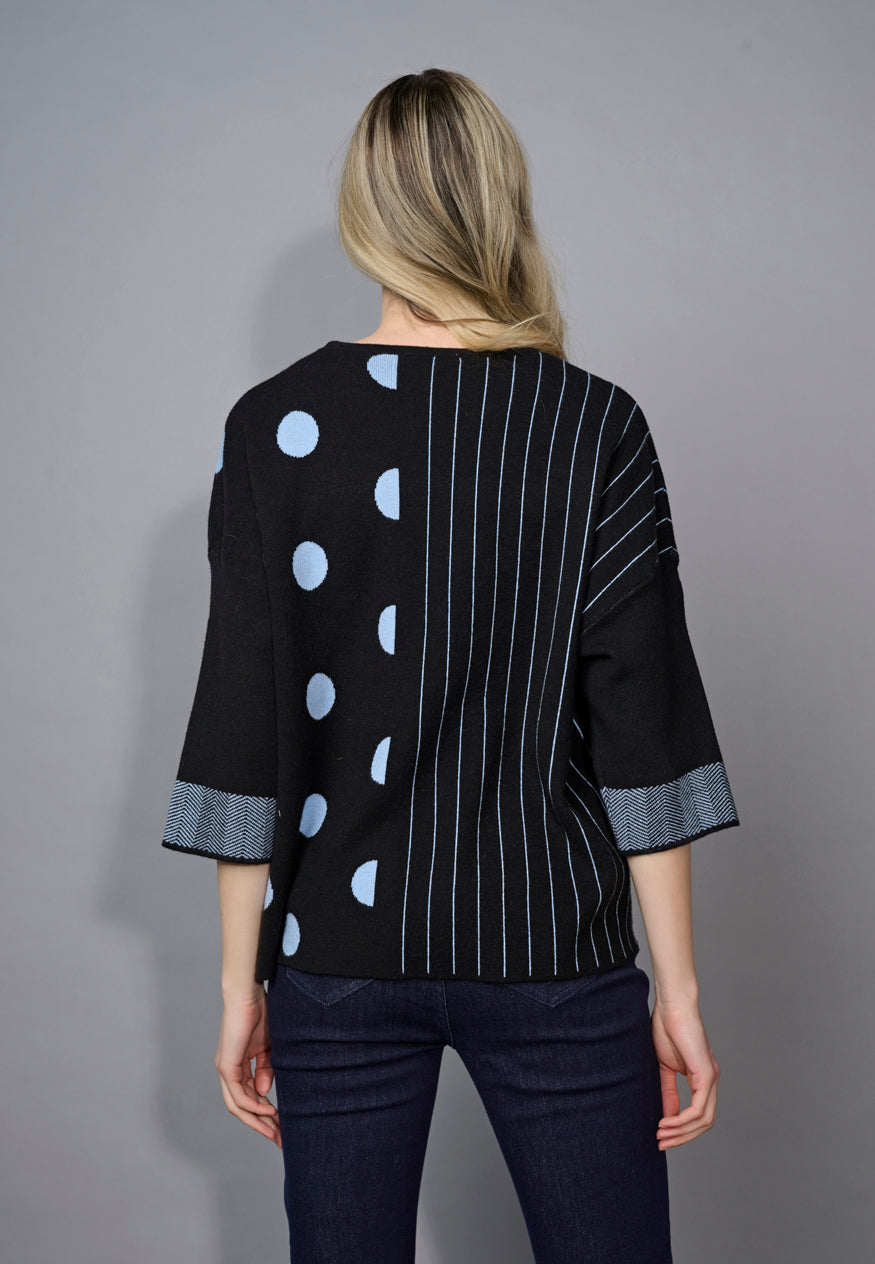 Features of the 3/4 Sleeves Striped Polka-Dot Top: