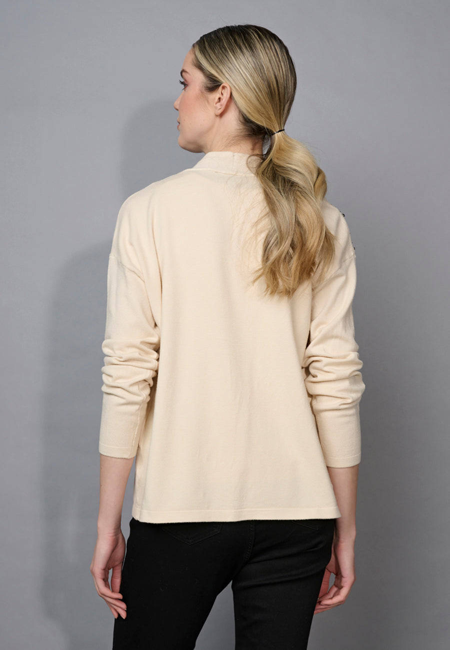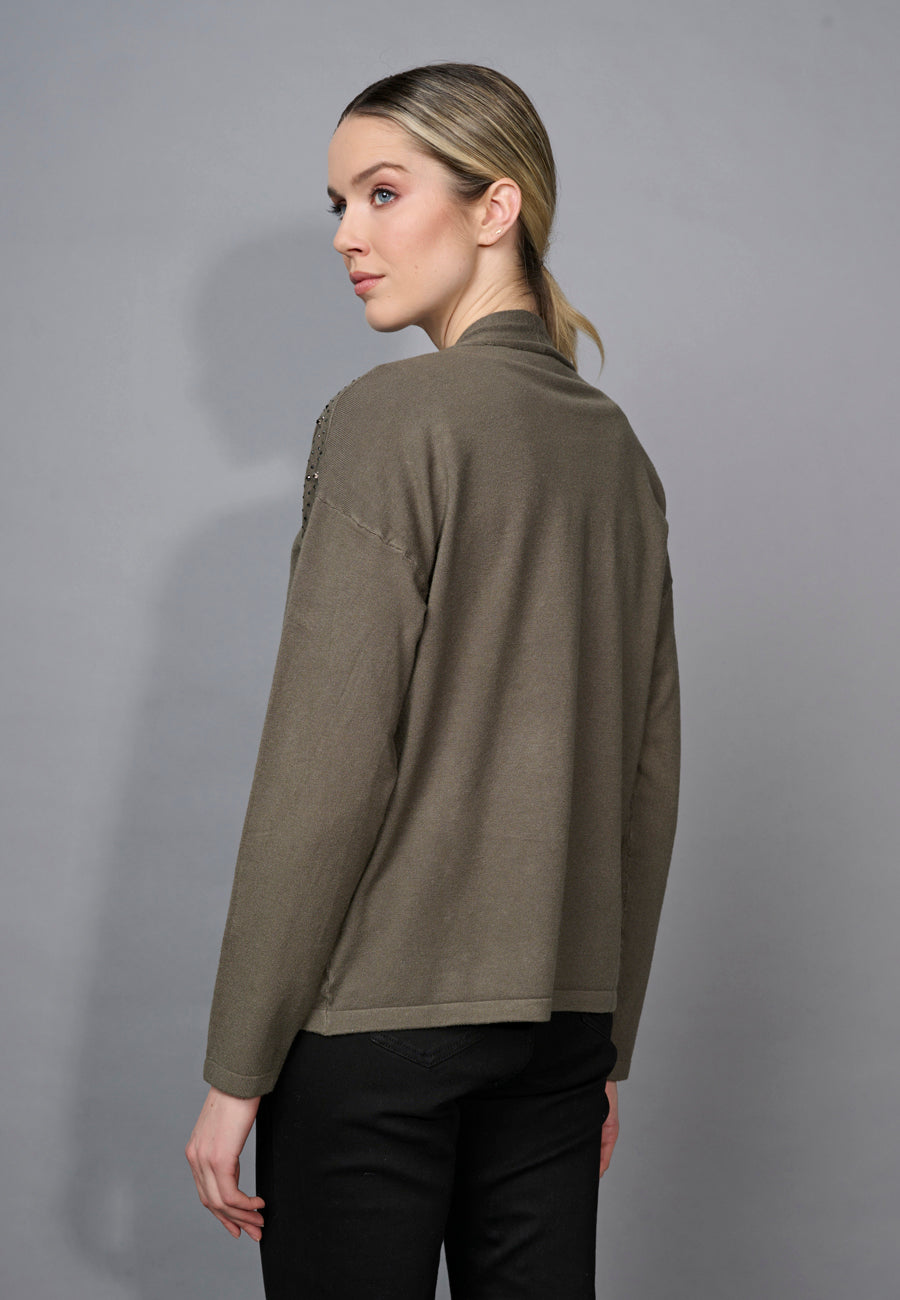 With clean lines and hand-placed embellishments, the Embellished Open-Front Jacket offers quiet glamour. Its collarless silhouette makes it ideal for pairing over detailed tops or knits. The perfect topper for both occasion looks and weekday edits.