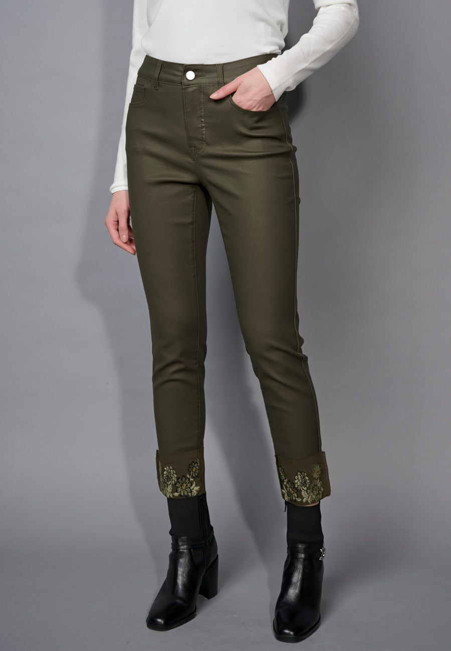 The Embroidered Cuff Jeans update a classic with delicate flower embellishments at the ankles, offering a fresh take on denim dressing. Designed in a comfortable high-rise fit with clean finishing. Ideal for grounding festive tops with subtle shine.