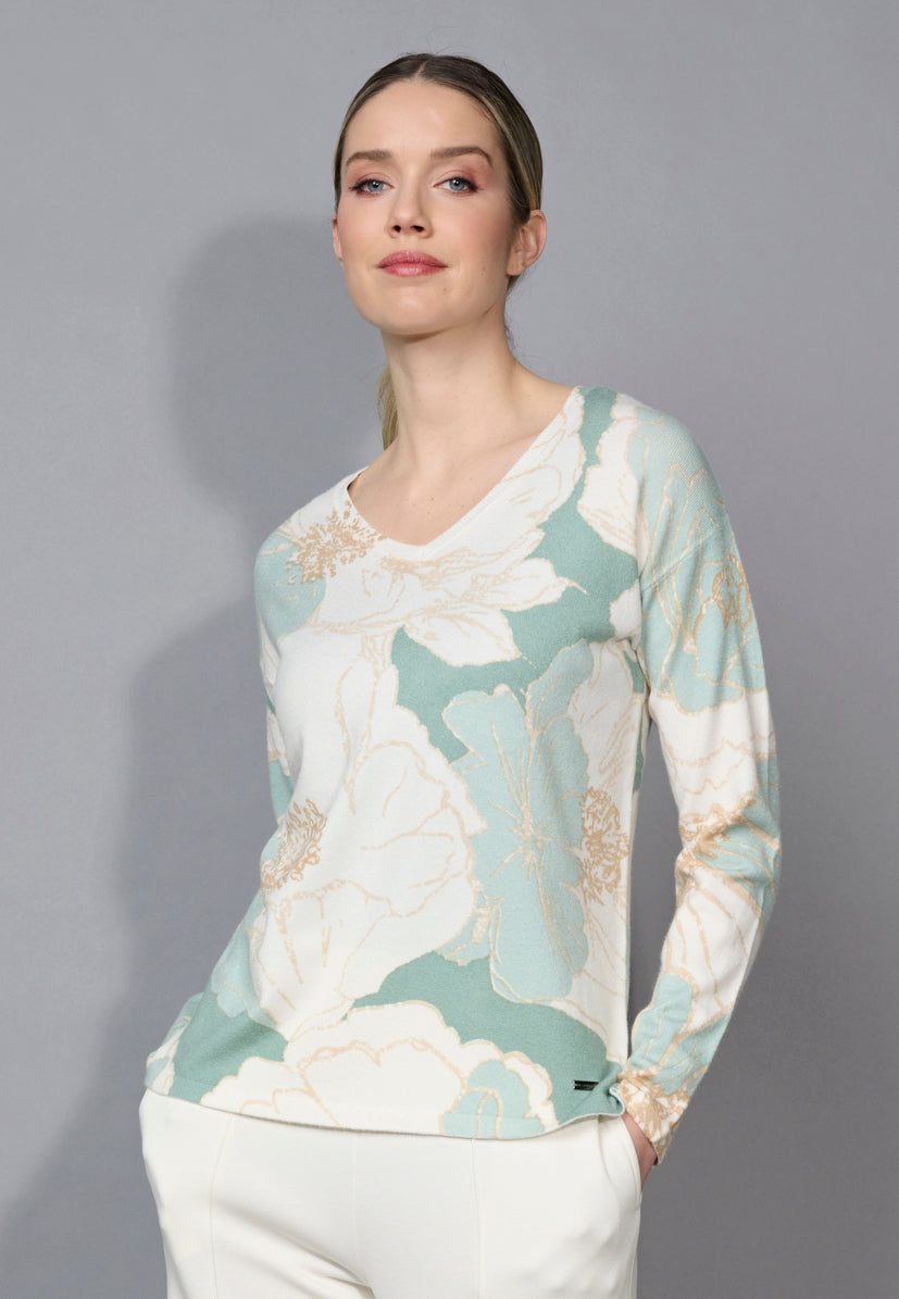 Brighten up your seasonal wardrobe with the Floral Print V-Neck Top. The relaxed shape and charming floral print make it a fresh pick for everything from weekend brunches to office layering.