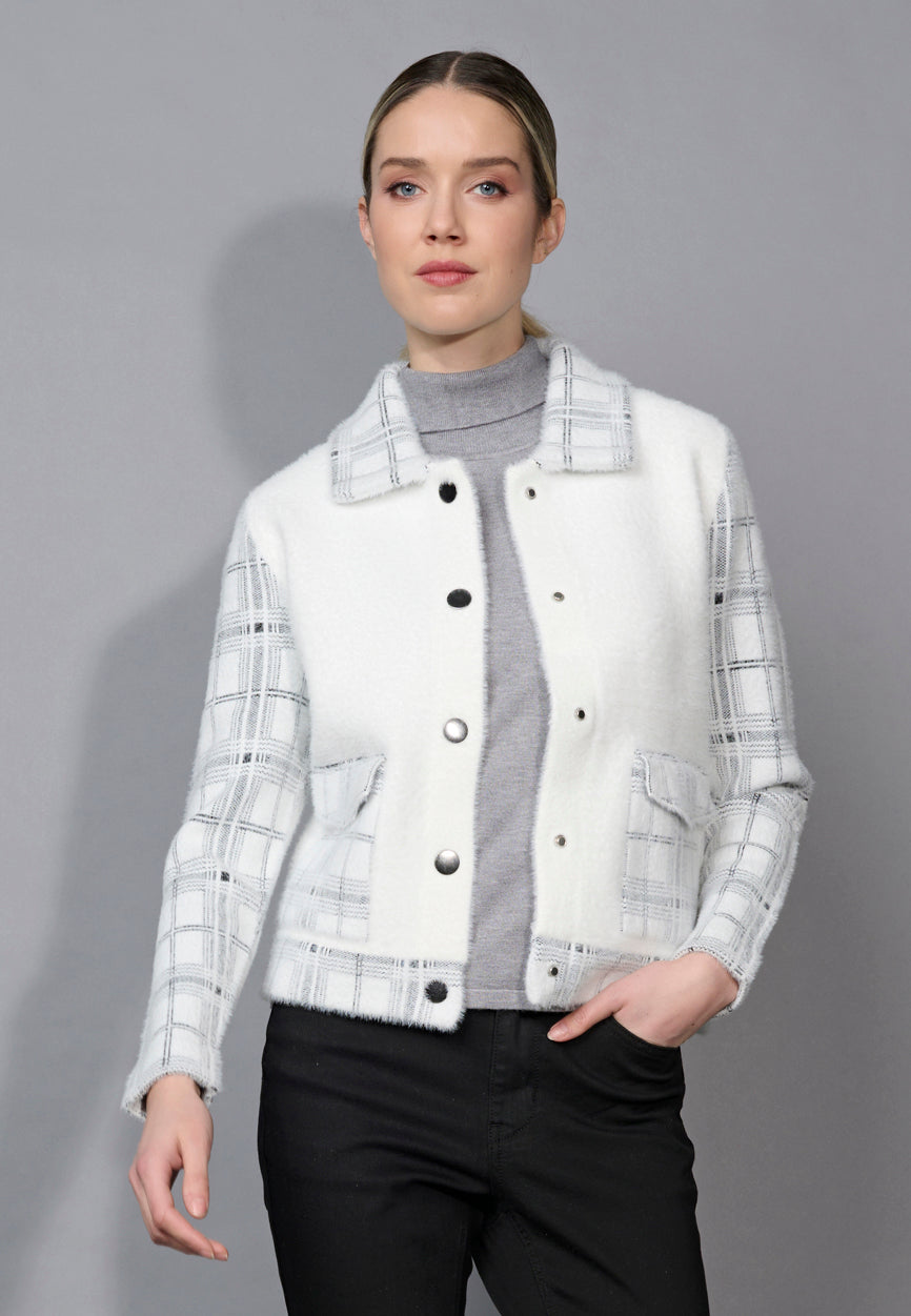 The Plaid Pockets Short Jacket elevates every look with its plaid inserts and shiny metal clip-buttons. Offering a structured look with two front patch pockets, this cute jacket is crafted from cloud-soft sweater-knit fabric while its cropped length ensures a flattering shape. Lightweight and easy to style, it transitions beautifully from day to evening.