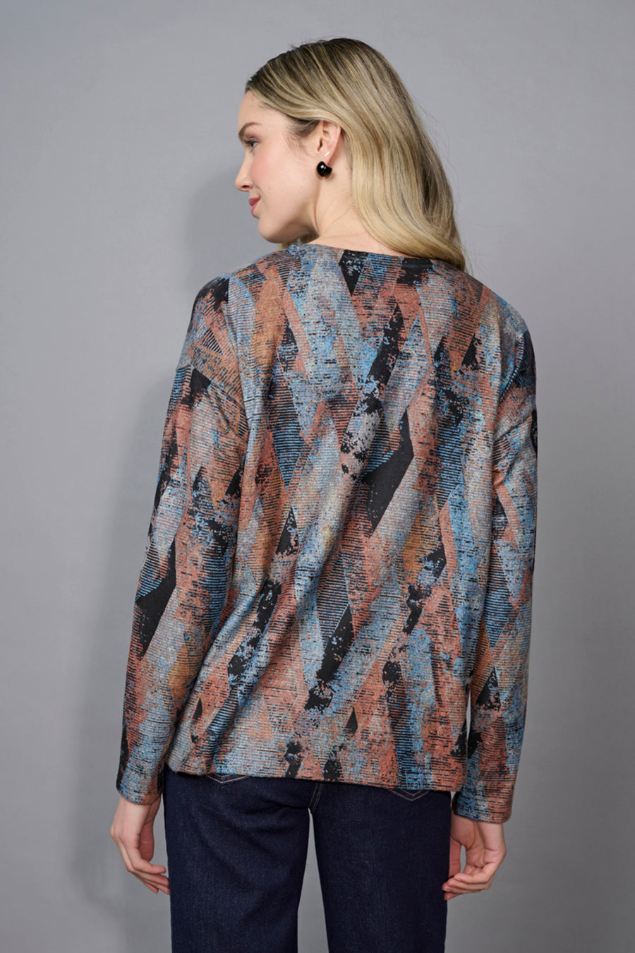 Features of the Crew-Neck Heather-Knit Printed Top: