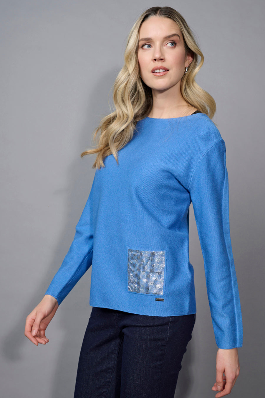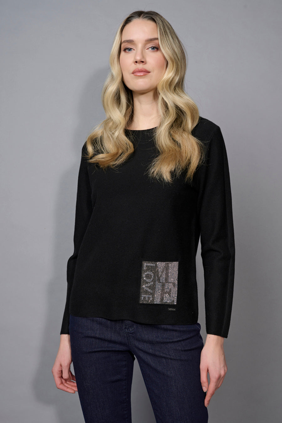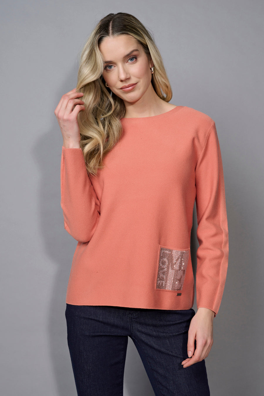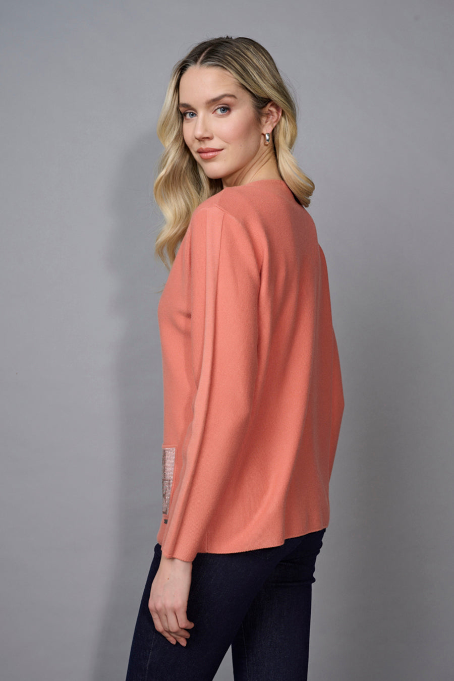 Style this Rhinestone Pocket Top with a pair of off-white pants and your favorite loafer – relaxed yet stylish day-to-night look.