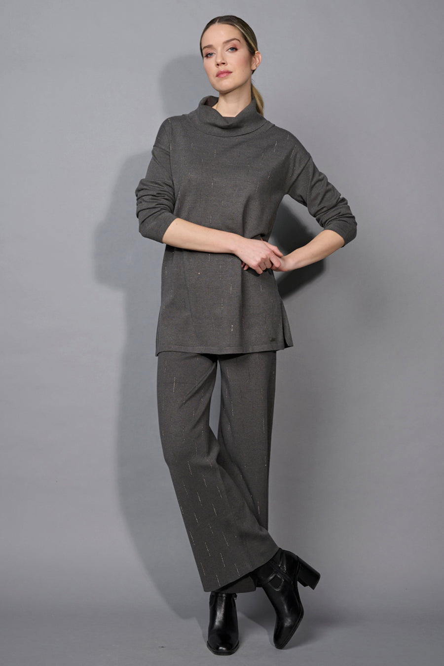 Bring the party mood and feel like at home in these stylish yet cozy Embellished Wide-Leg Pants. Cloud-soft knitted fabric, elastic waistband, and sophisticated sparkling embellishments deliver a must-have pair of pants for Fall. Elegance without sacrificing comfort is the moto of this must-have style!