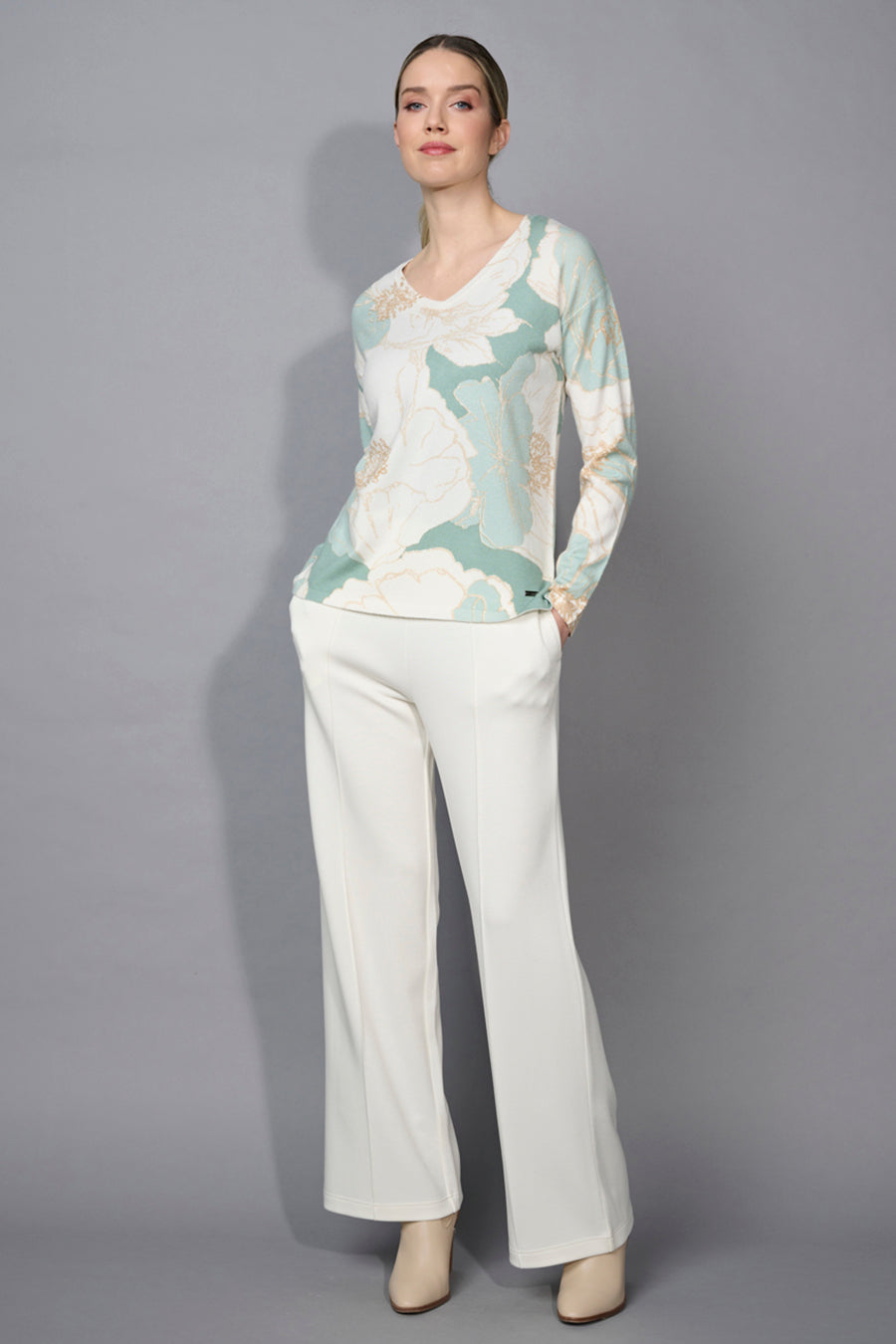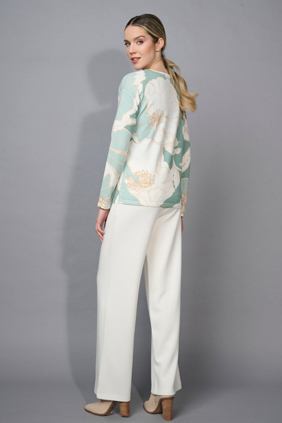 Style these Wide-Leg Center-Seamed Pants with our shimmer leggings and a V-Neck Soft-Knit Top for a simple and modern layered look.
