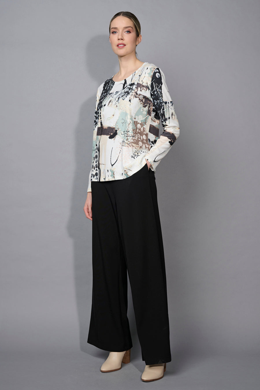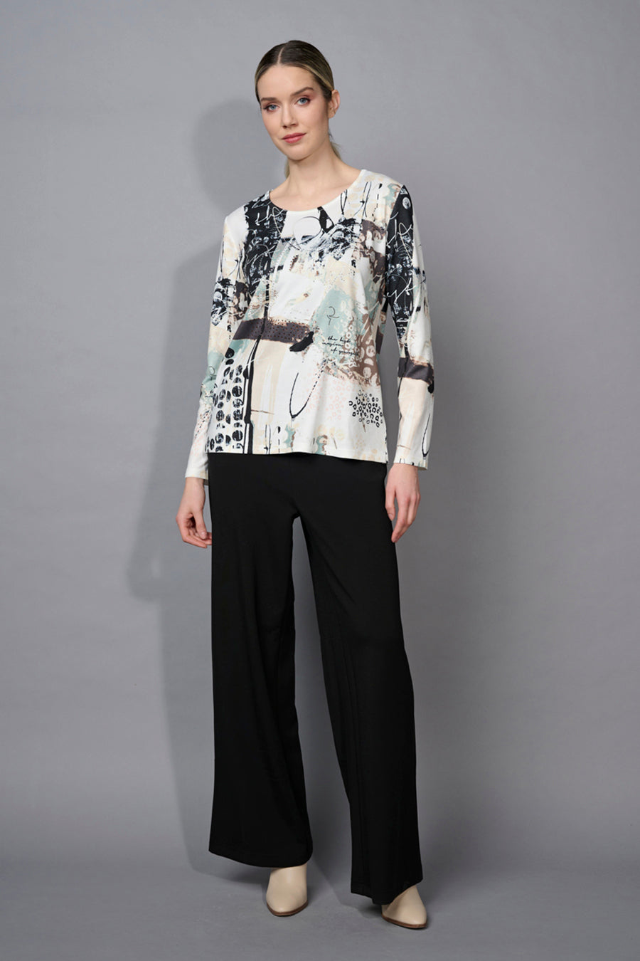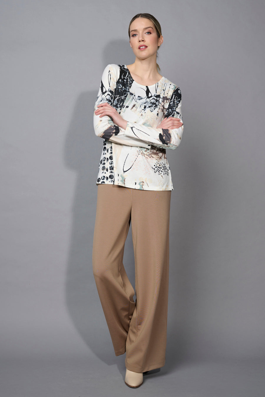 Style these Wide-Leg Center-Seamed Pants with our shimmer leggings and a V-Neck Soft-Knit Top for a simple and modern layered look.