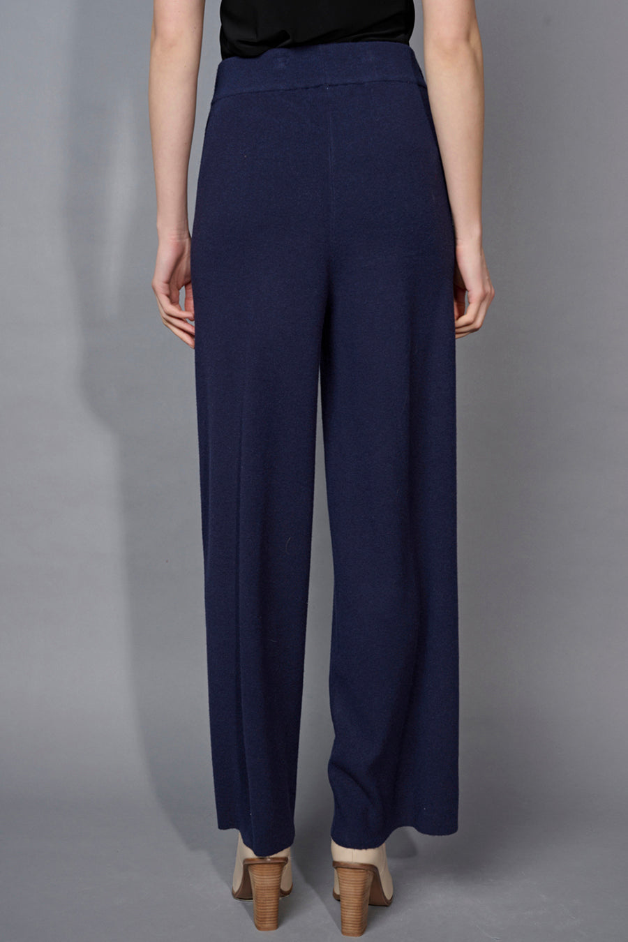 To feel as cozy as at home in these Wide-Leg Full-Length Knit Pants. Cloud-soft knitted fabric, elastic waistband, and timeless deep navy hue deliver the most stylish pair of pants for Fall. Elegance without sacrificing comfort is the moto of this must-have style!