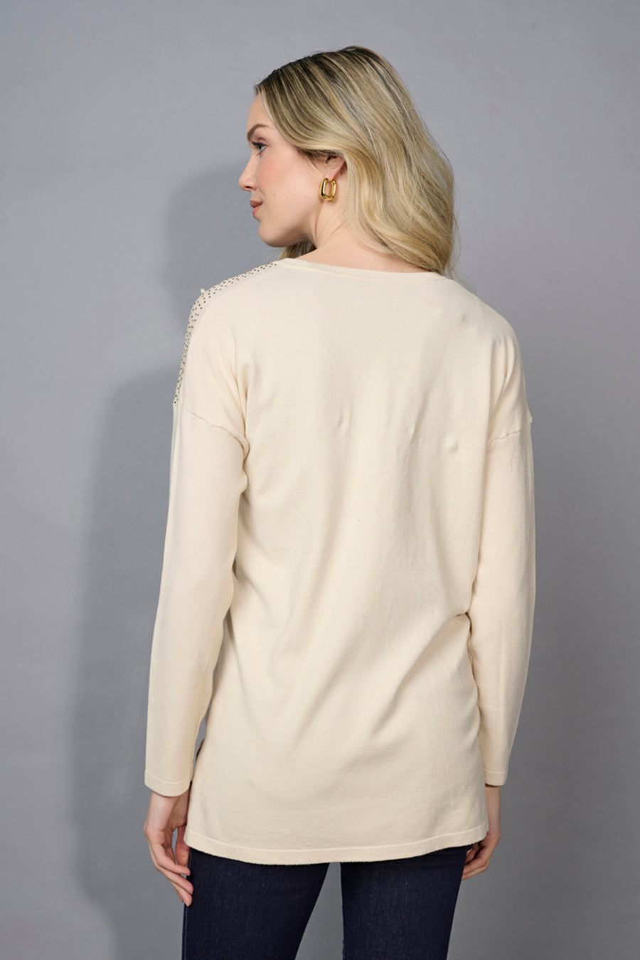 Features of the Embellished V-Neck Top:
