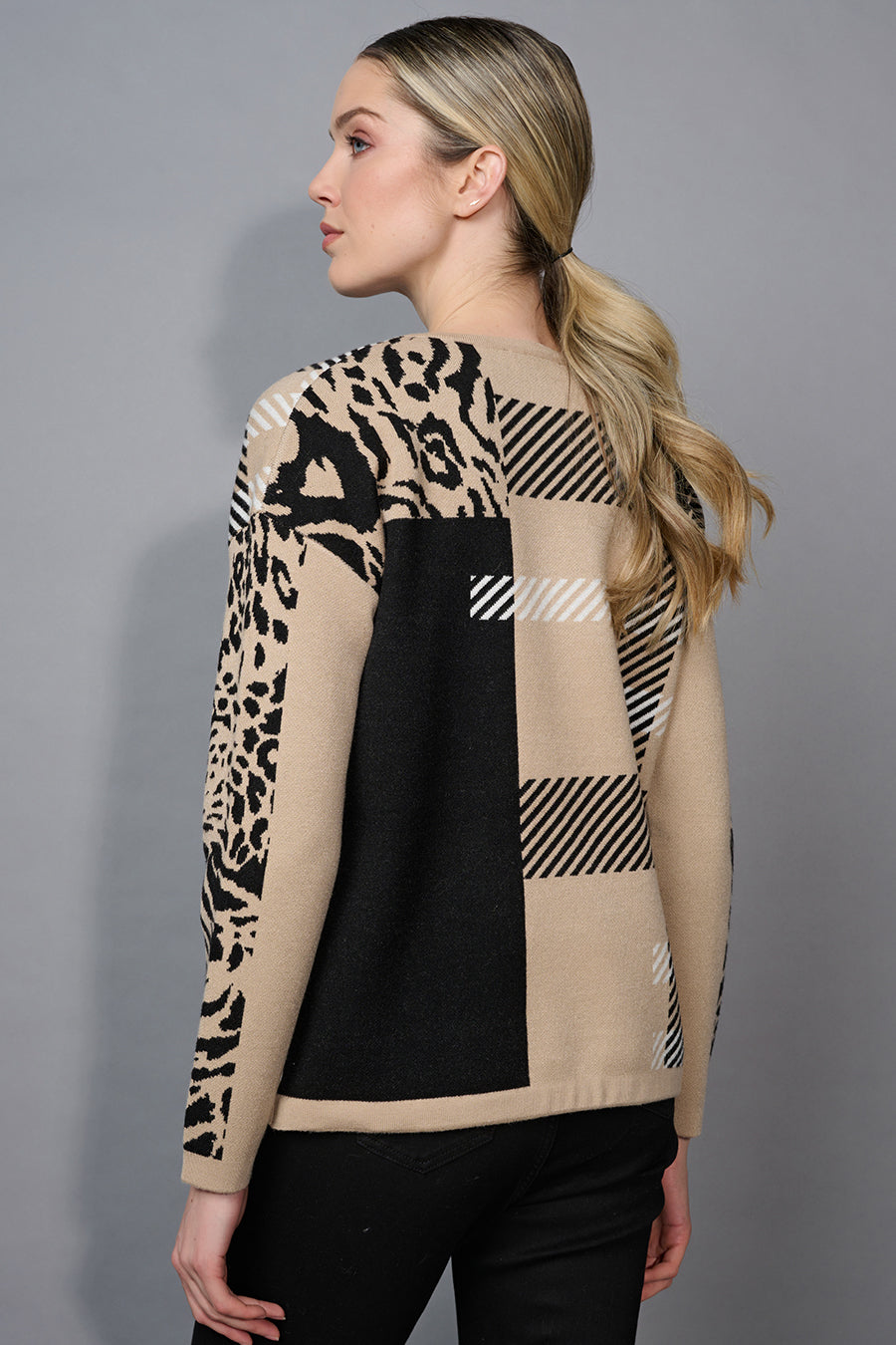 We will wear this Drawstring Hem Animal Print Jacquard Top with our best-selling Pull-On Straight-Leg Pants in off-white.