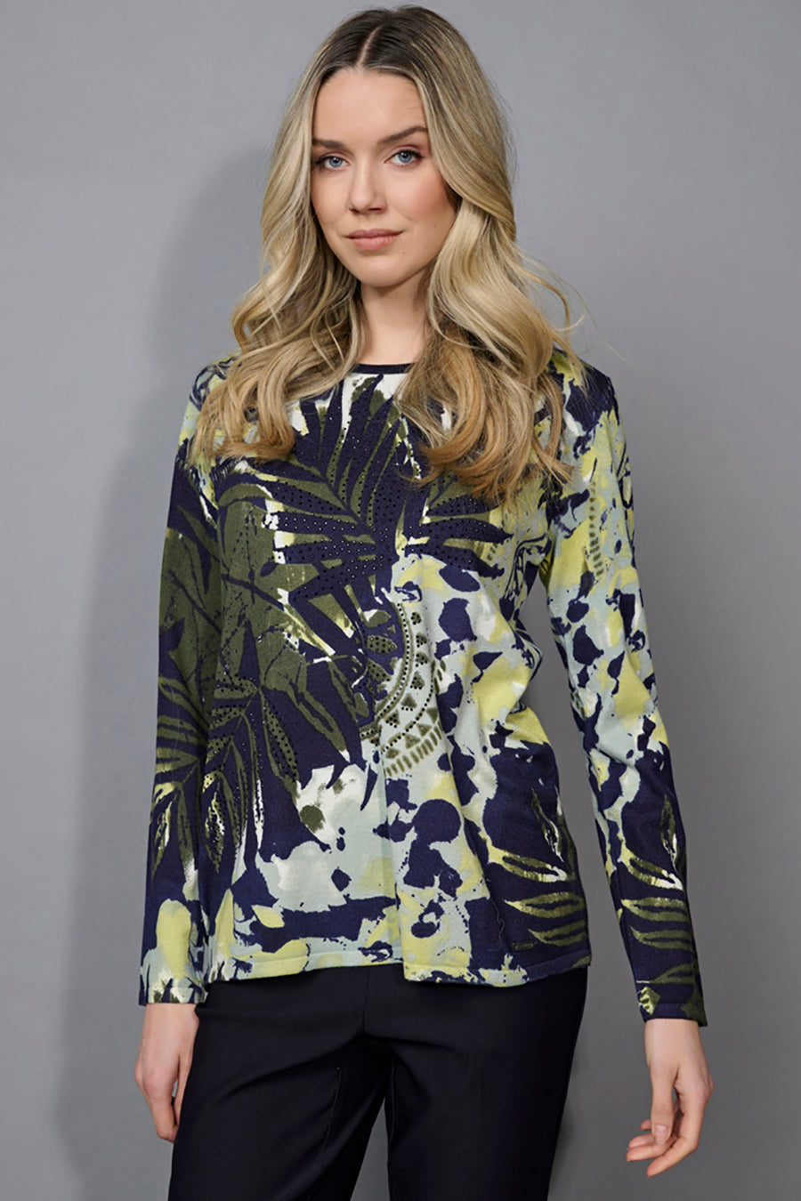 Love the Embellished Crew-Neck Leaf-Printed Top as much as we do? Check out what pants we have in store you can pair with it  Picadilly Canada Pants.