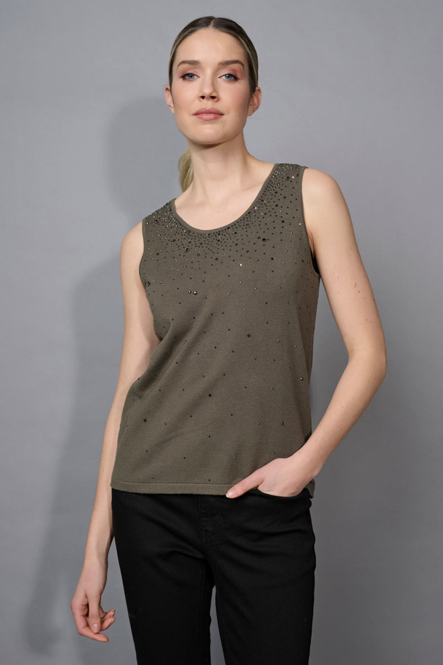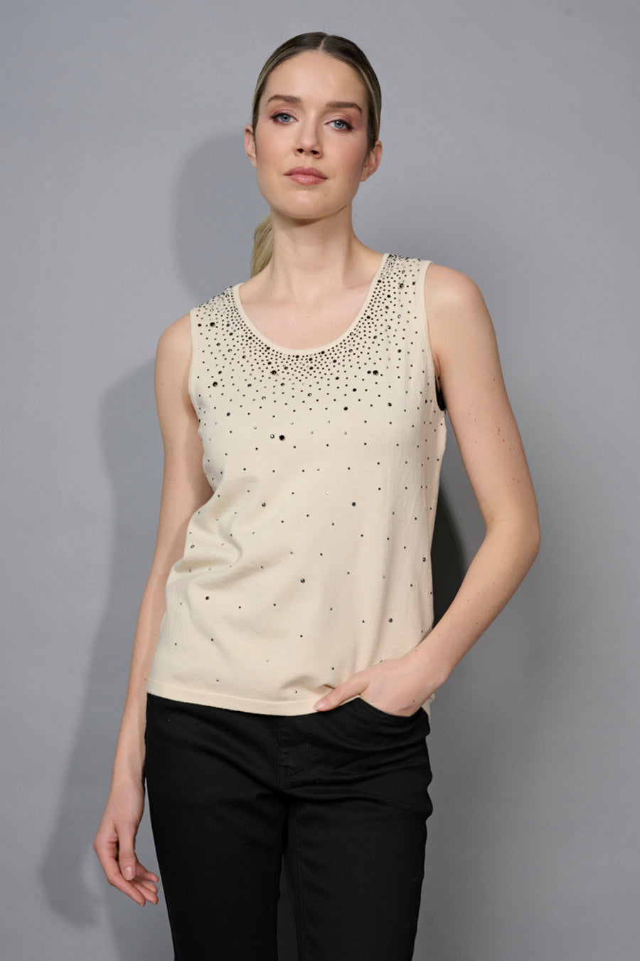 Style this Embellished Tank with a matching Embellished Open-Front Jacket.