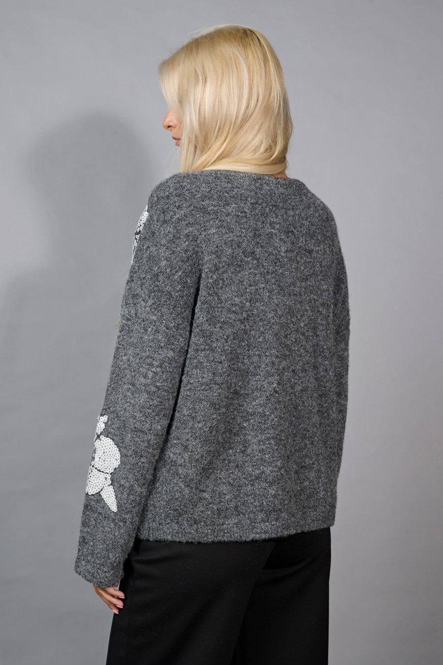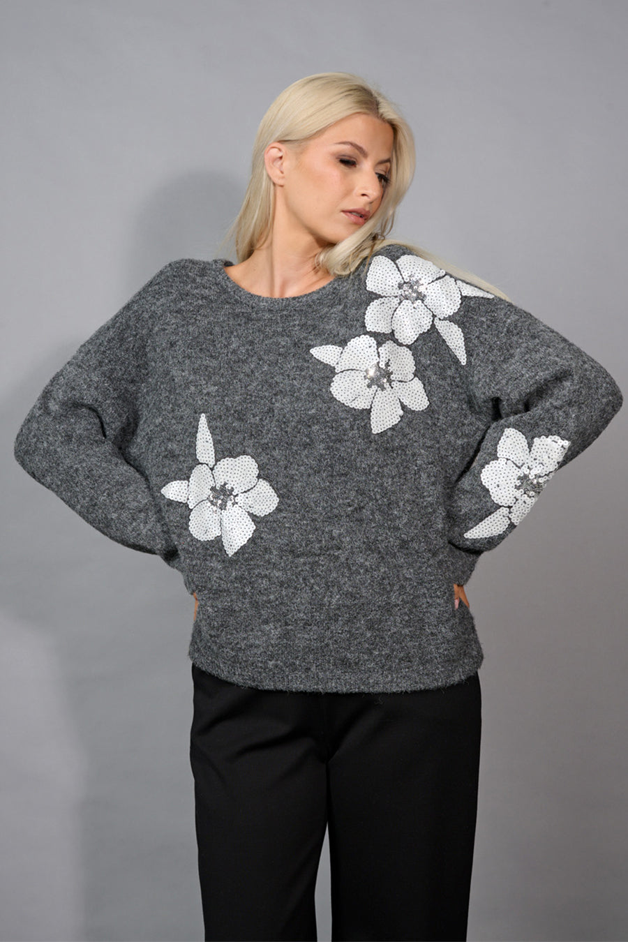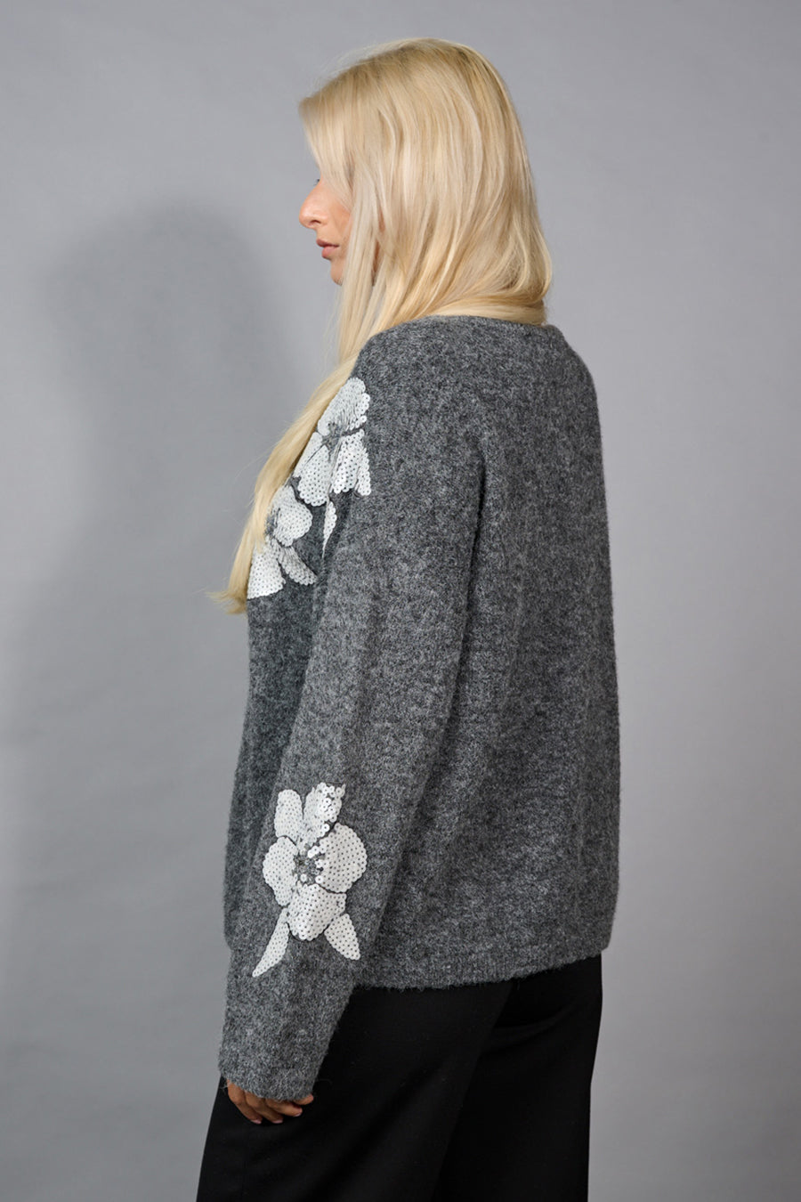 A sweater-knit top like no other. The Floral Sequins-Embellished Top comes in 2 timeless colors and features delicate flower print, embellished with sequins – a simple yet playful addition to one’s sweater rotation. Style it with wide-leg jeans or off-white pants for a stylish, polished look.