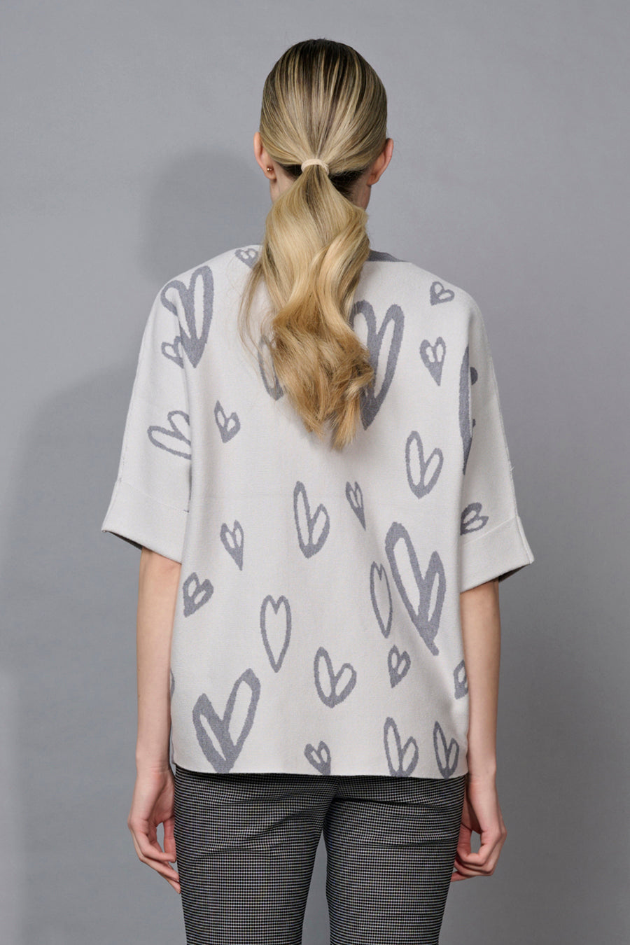 Add a playful touch to your daily style with this Stone-Embellished Heart Top. Elegant V-neckline, cropped sleeves, and printed hearts, embellished with sparkling rhinestones are the perfect attributes of a feminine garment. Available in 2 colors, this soft sweater-knit style is a great addition to a winter wardrobe.