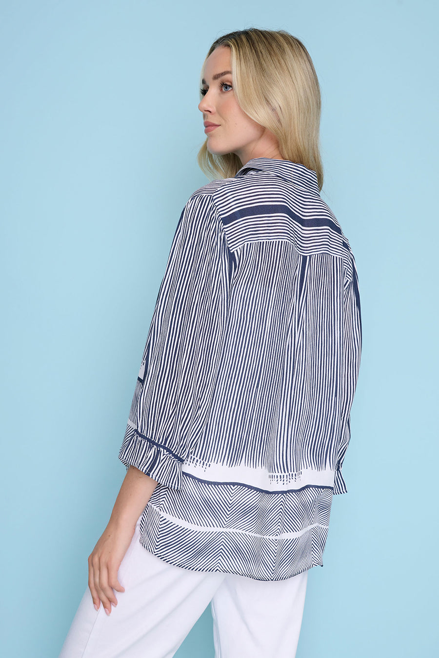 Crafted in custom-printed viscose crepe, the 3/4 Sleeves High-Low Shirt delivers fluid movement with an artful finish. The high-low hem adds dimension, making it an easy statement piece when worn solo or styled with the matching pants.