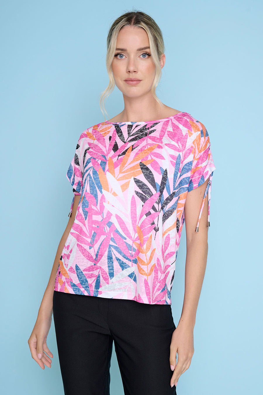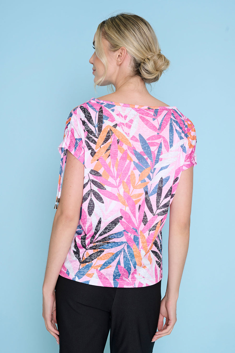 Le haut d'épaule à cordon de serrage offre une coupe fraîche et ajustable avec une touche de personnalité. Fabriqué en jersey flammé imprimé, il est doux et léger, avec des détails de cordon de serrage qui ajoutent une touche ludique et intéressante.