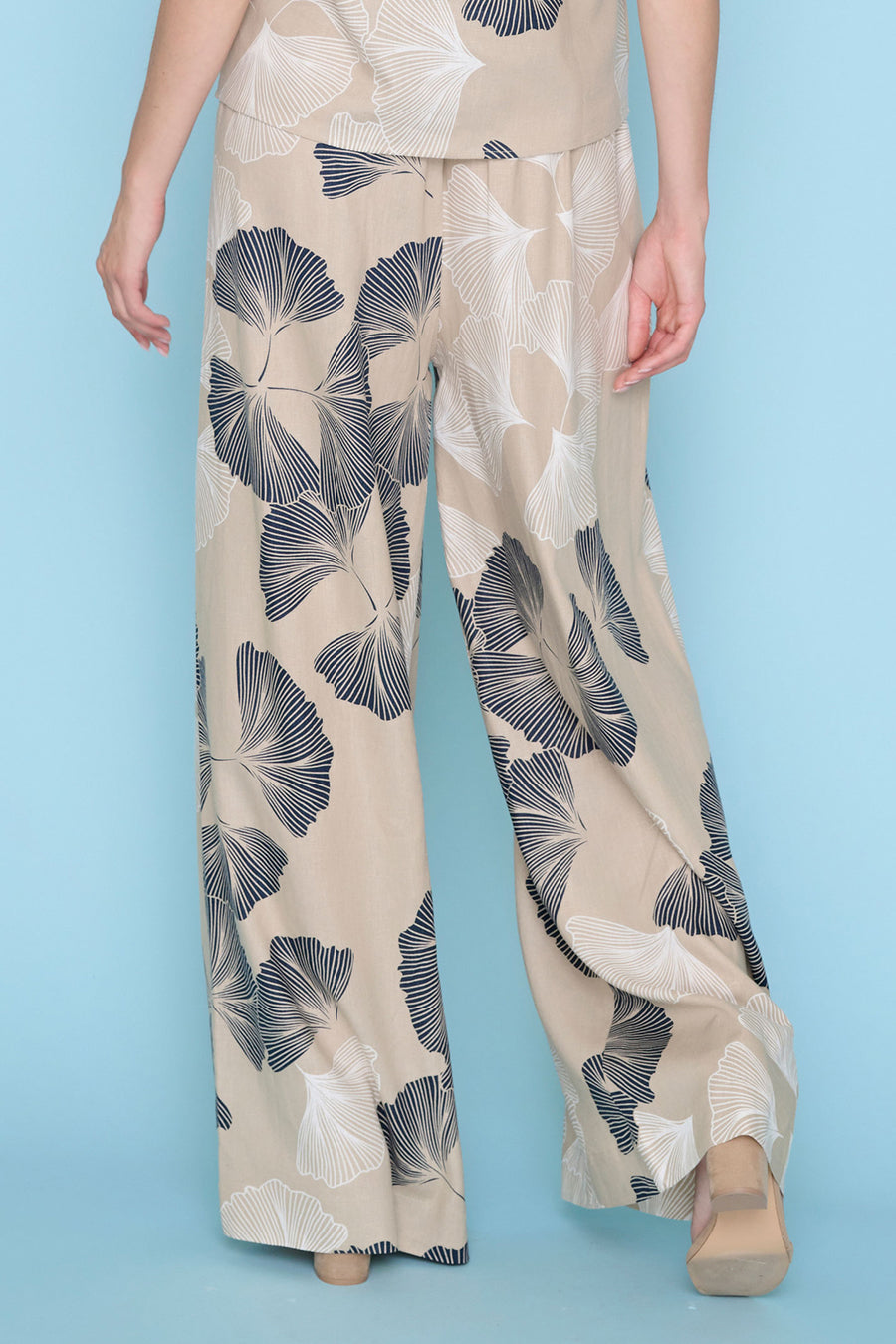 Le pantalon plissé coupe large longueur régulière est une ode au mouvement. Conçu en lin et viscose imprimés, il offre un tombé fluide et s'associe parfaitement au haut assorti pour un look à la fois cohérent et décontracté.