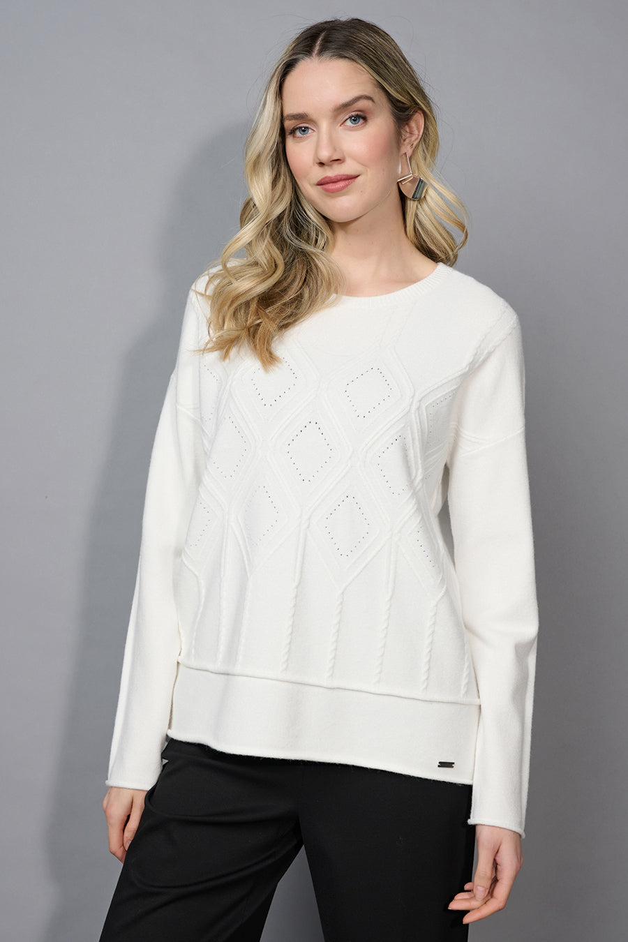 Style this Diamond Cable Top with a pair of seasonal denim jeans or a pair our best-selling Pull-On Straight Leg Pants – a cozy, elegant, and ultimately stylish look is ready.